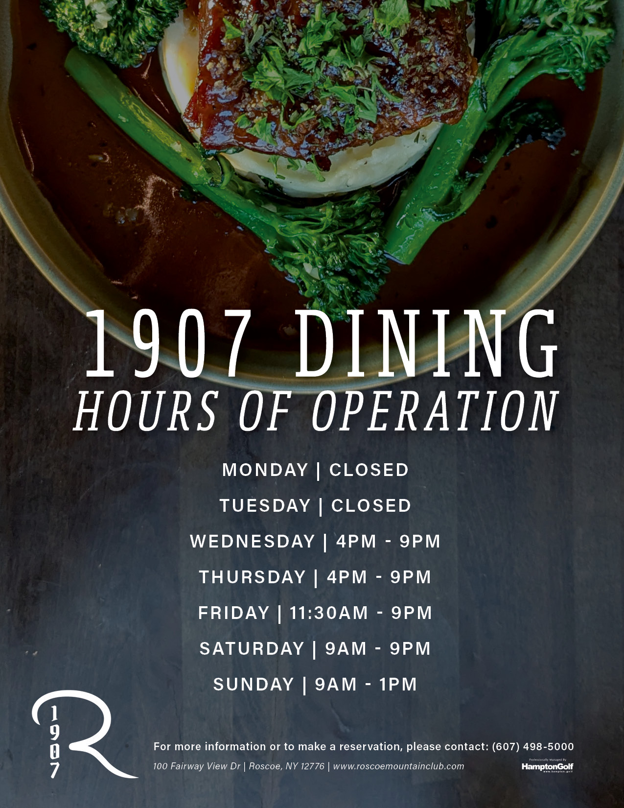 Join us at 'The 1907' for a fresh dining adventure at Roscoe Mountain Club!